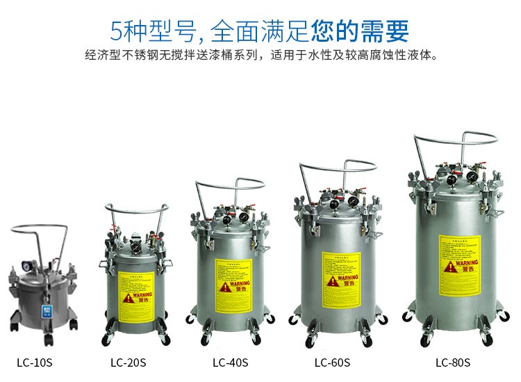 不銹鋼經濟無攪拌送漆桶,送漆桶是高壓噴涂工藝中必須的裝置,該設備具有耐高壓的特性。不銹鋼適用于水性、脫模劑送、膠水輸送、涂料輸送和其他常規液體輸送等。