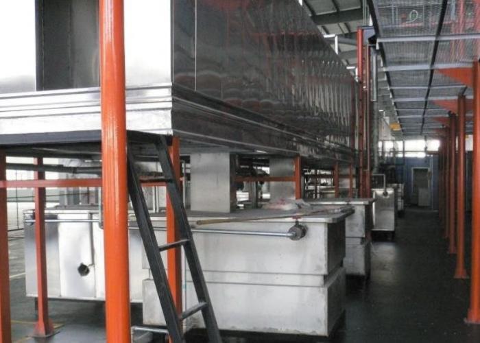 上述兩種情況的綜合反映是涂膜產(chǎn)生階梯狀缺陷。 因此,一些自動電泳涂裝生產(chǎn)線也將采用斷電的方法進入電泳槽。 實際上,斷電進入電泳槽的方法比較簡單。 僅需縮短導(dǎo)電棒,即可將所有工件浸入電泳槽中。 讓工件與導(dǎo)電束接觸,并始終實現(xiàn)斷電進入電泳槽的方式。